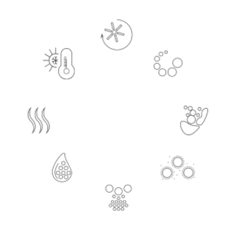 Dazu gehören: Mischen, reagieren, dispergieren, lösen, verschlickern, plastifizieren, entlüften, zerfasern, aufschließen, agglomerieren, desagglomerieren, pelletieren, granulieren, kneten, befeuchten, trocknen, heizen, kühlen, strippen, imprägnieren, coaten, hydrophobieren.